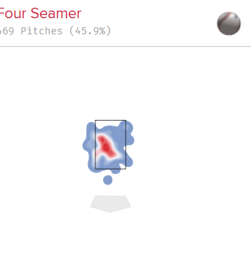 According to StatCast, Chivilli threw his fastball 469 times in 2025 and hitters slugged .585 off of it. Almost 59% of the time, if a guy was hitting Angel’s fastball, he was probably hitting the absolute piss out of it. Chivilli gave up 45 hits off his fastball in 58 innings last year, here’s the location heat map on where those pitches landed before getting walloped: